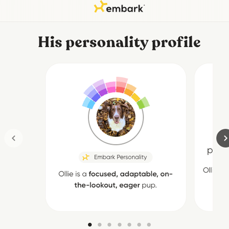 The Personality Quiz feels like a small celebration of your dog’s personality  and is available with a purchase of Embark’s Breed + Health, Purebred & Breed ID Dog DNA Tests.